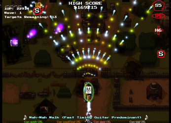 bosses as the waves increase have larger and larger concentric shield layers to shoot down before hull damage is taken.