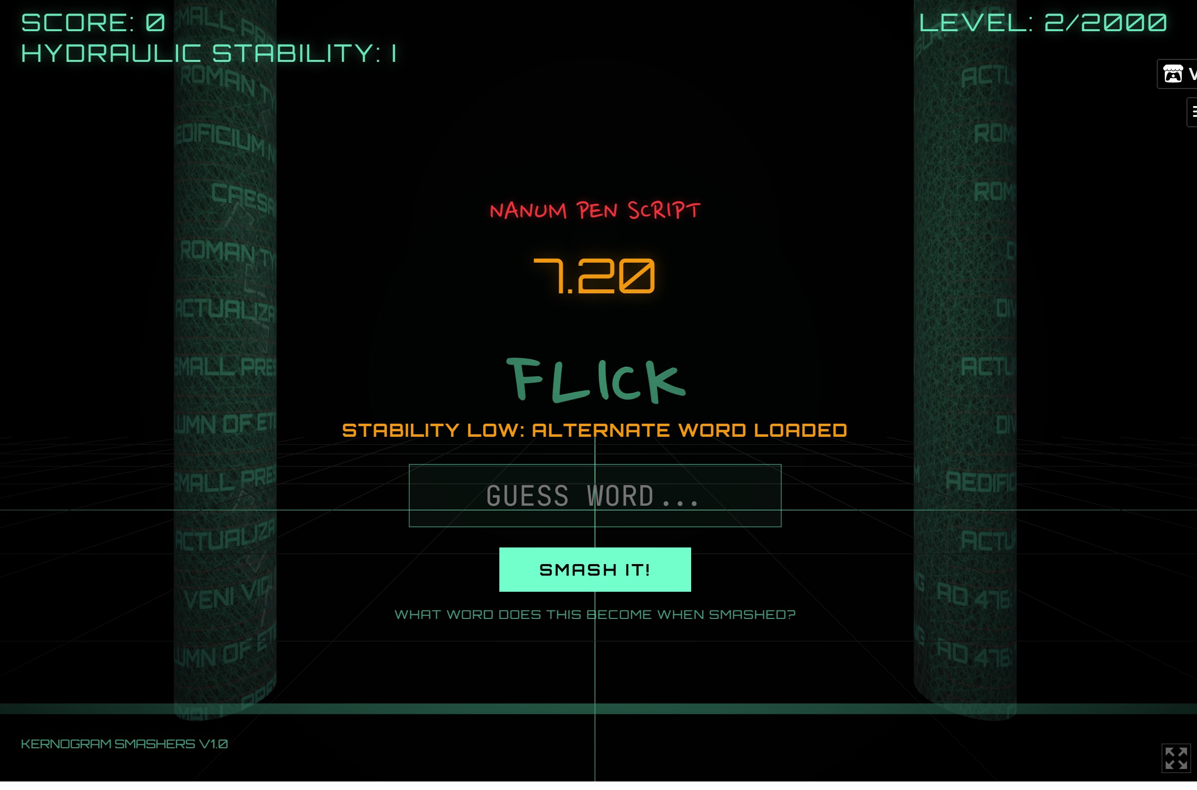 the Specification: steal my game and make it truly work for 600,000 words in the English language x 2,000 fonts.