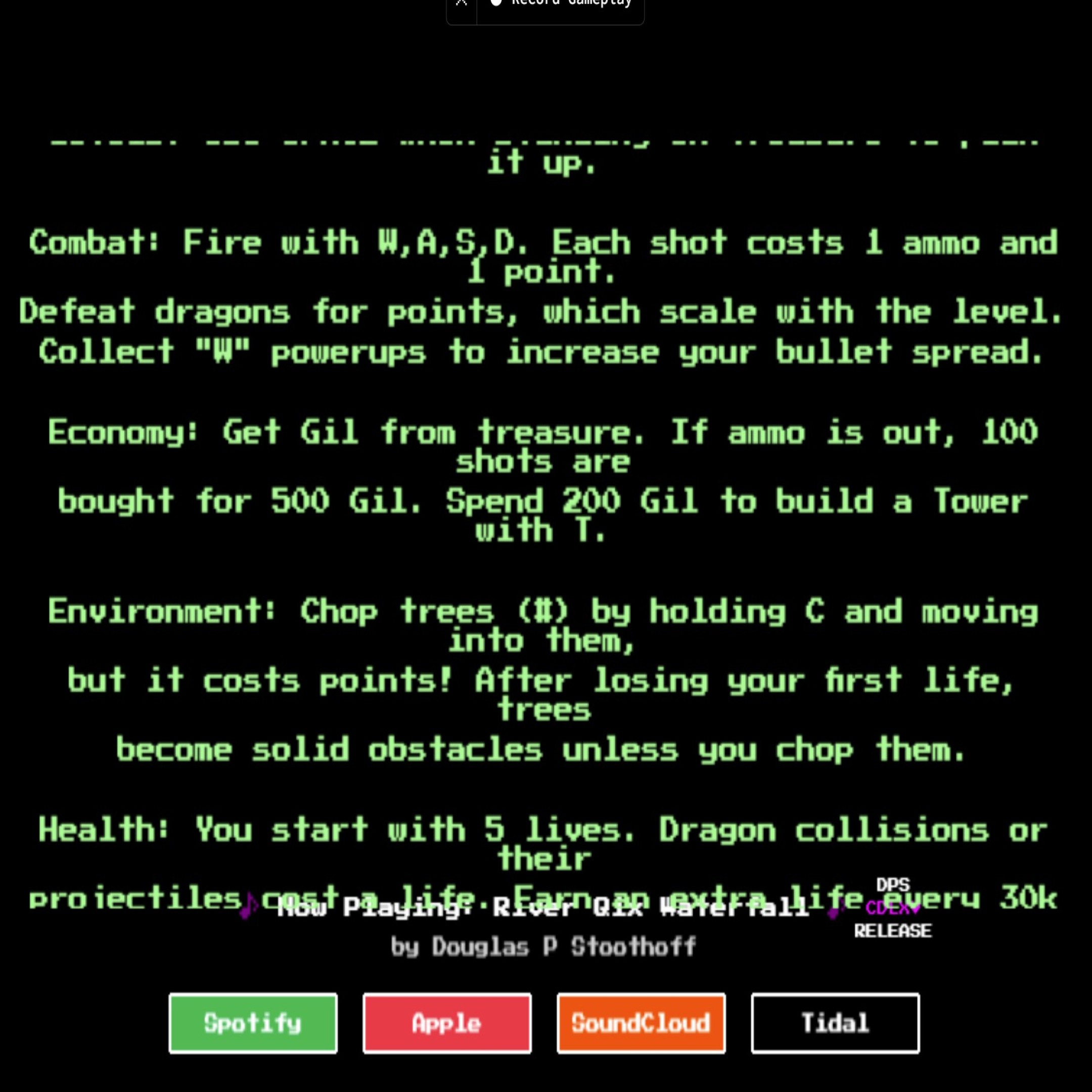 pretty cool concept of an ASCII shooter. Once i ran out of ammo, i couldn't find any ammo symbol, so i kinda got softlocked. And even tho this game is pretty minimal, after 5 enemies the game started lagging.