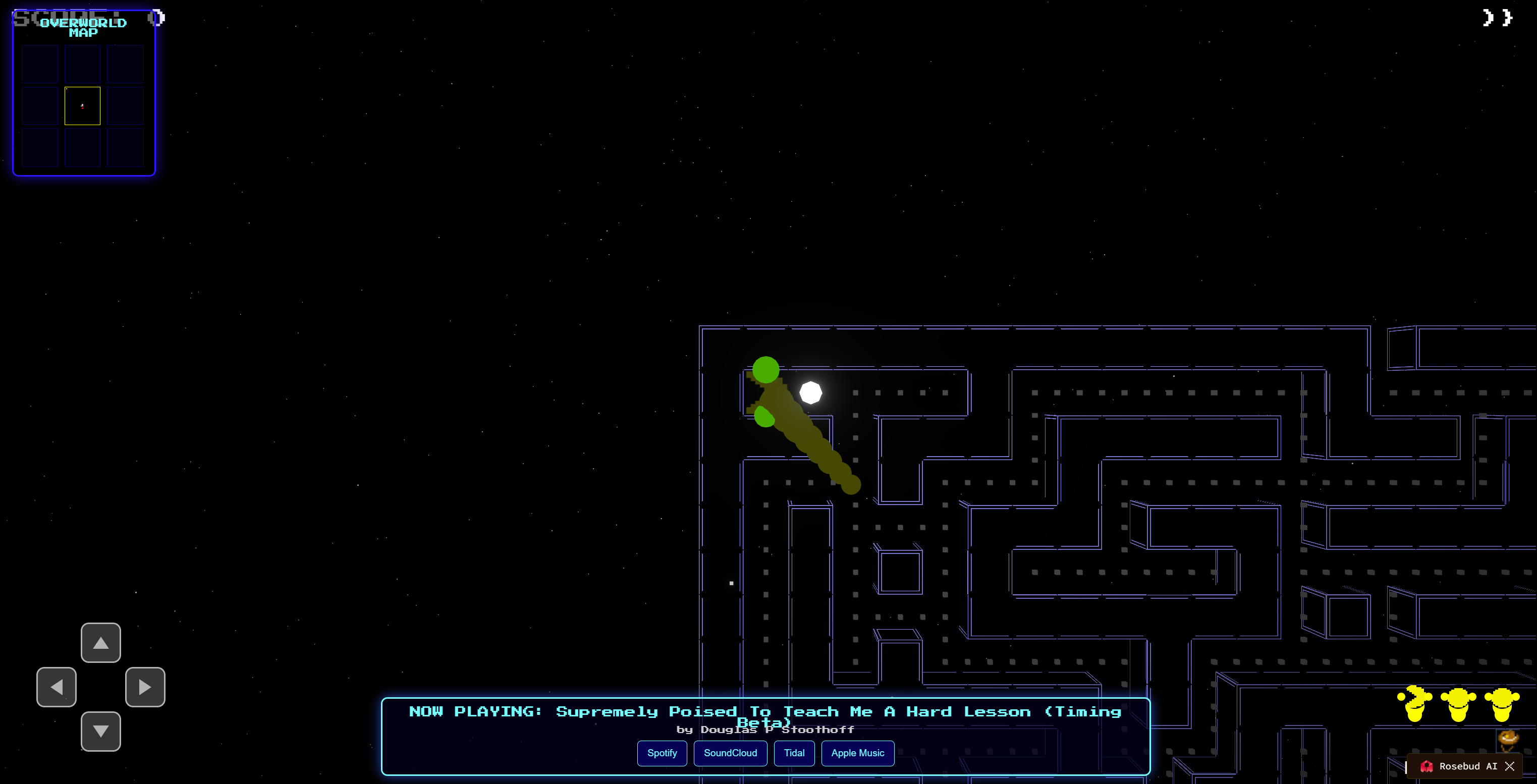 so now there's 3, the rosebud link with old wyrmpac 9.75, the wyrm pac ii here from the Rosebud that is stuck, and the new new wyrm pac ii which IS...the "Run this game button" at the top of the page AND....this button run one is the first one to truly let you be in the 3x3 overworld anywhere Other than the center maze. all prior versions incorrectly cycle you thru the tunnels always back to the center.